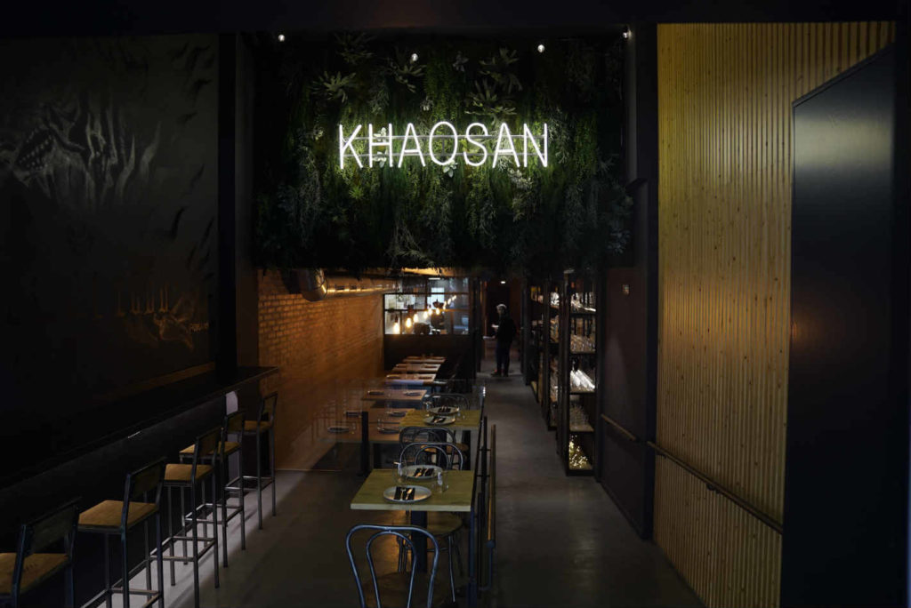 El restaurante se organiza en tres espacios: Una zona en la entrada para los que vienen con hambre y poco tiempo, la sala principal con visión a la cocina y una trasera con un carácter algo clandestino y escondida de las visiones desde la calle.